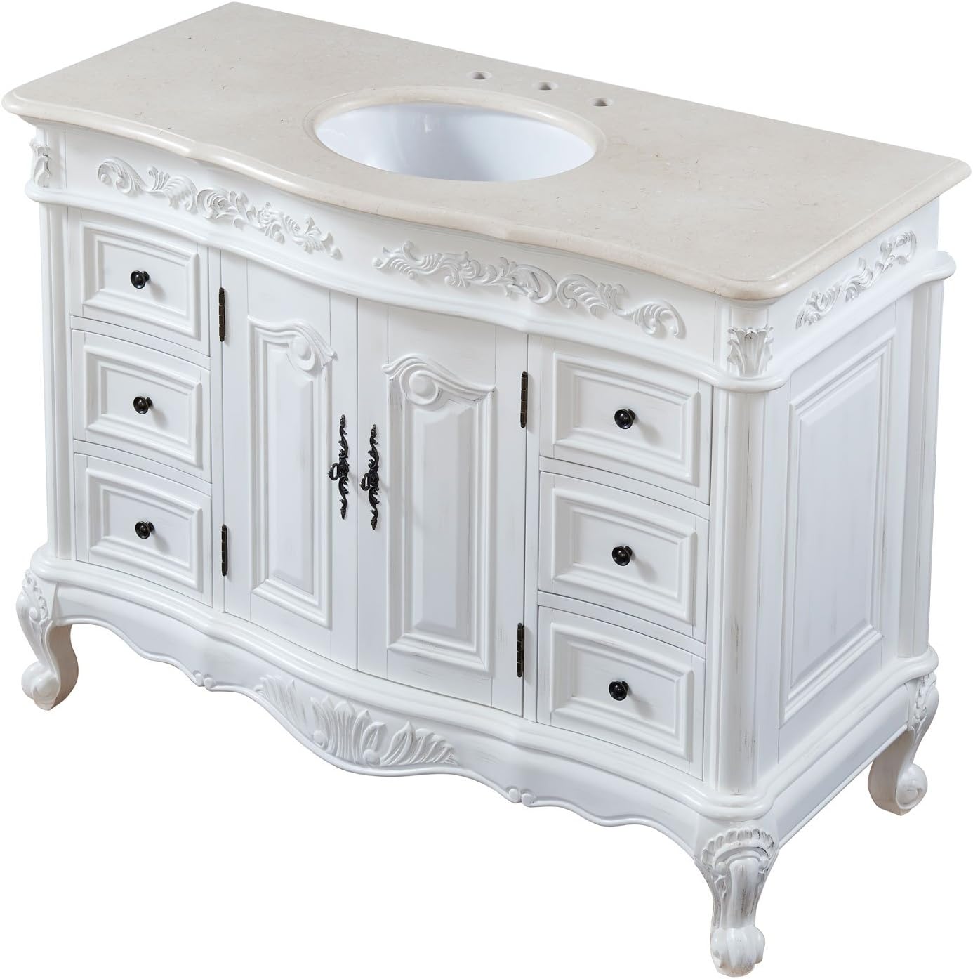 Unlike a pedestal sink, this model offers space between the legs to store a basket of towels or other bath supplies.