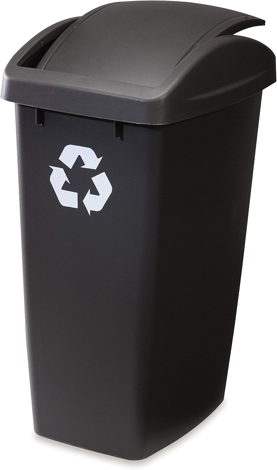 This item rubbermaid 13 gallon swing top recycling trash can, blue recycle, kitchen waste basket with lid.